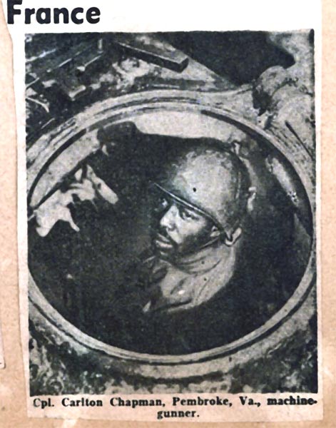 Cpl. Carlton Chapman Pembroke, VA., machine-gunner In France